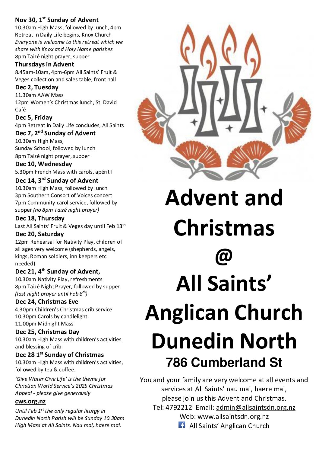 Welcome to All Saints’ Anglican Church. We are a vibrant Anglo-Catholic faith community based in North Dunedin. We would love to meet you, and welcome you no matter where you are on your faith journey. If you would like to explore faith, come back to church, join a study group or if you would like to be baptised, confirmed or married here please contact the vicar.
